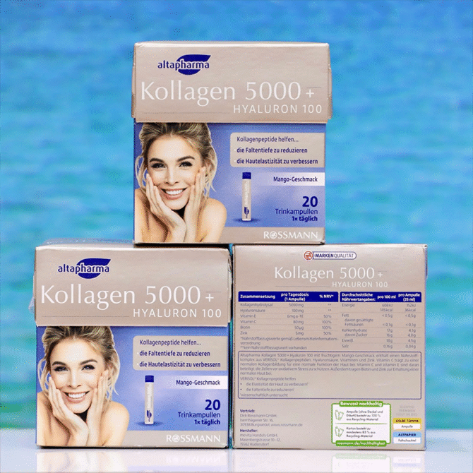 ألتافارما كولاجين 5000 + حمض الهيالورونيك 100 هو مكمل غذائي سائل مصمم لدعم صحة البشرة وتقليل التجاعيد وتحسين مرونتها. يحتوي على 5000 ملغ من الكولاجين و 100 ملغ من حمض الهيالورونيك، مما يساعد في ترطيب البشرة بعمق وتعزيز تجديد الخلايا.