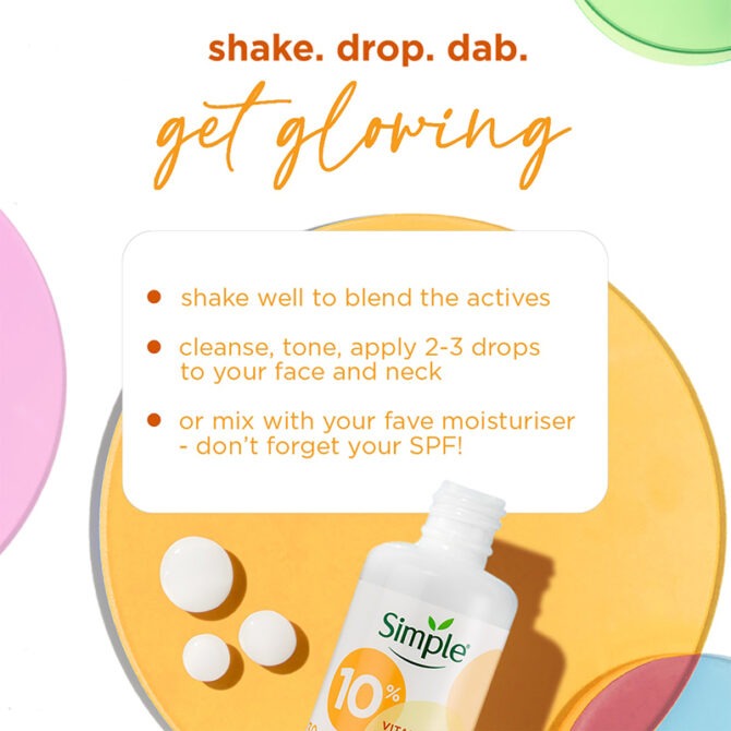 سيروم Simple 10% Vitamins C+E+F هو معزز قوي ومركز مصمّم لإعادة الإشراقة الطبيعية للبشرة بفضل تركيبته الغنية بالفيتامينات الأساسية.