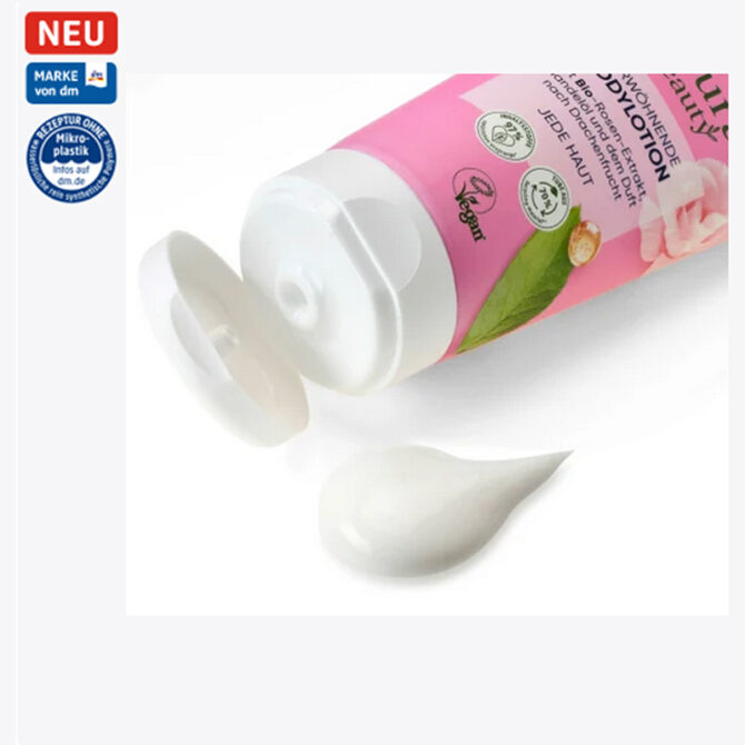 لوسيون الجسم ناتشورال بيوتي برائحة الورد والتنين من مجموعة باليا، يحتوي على 97% من مكوناته من مصادر طبيعية، مصمم للبشرة العادية إلى الجافة. تمت تأكيد توافقه مع البشرة من قبل أطباء الجلد، ويحتوي على مواد طبيعية قيمة مثل مستخلص الورد العضوي وزيت اللوز، يعتني بالبشرة ويجعلها ناعمة ومرنة. التركيبة خالية من البلاستيك الدقيق والبوليمرات الاصطناعية المائية القابلة للذوبان. العبوة مصنوعة من 70% من مواد الإعادة التدوير