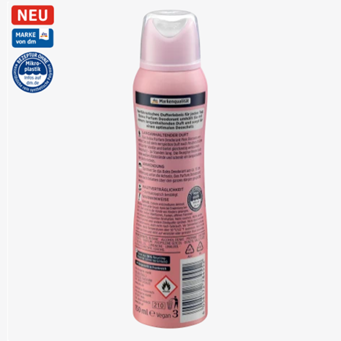 وليس فقط برائحته الرائعة يُثبت هذا المزيل نفسه، بل يترك أيضًا بياضًا عند الرش – سواء على البشرة أو الملابس. هكذا ستشعر بالانتعاش طوال اليوم. تركيبة خالية من البلاستيك الدقيق والبوليمرات الصناعية المائية
