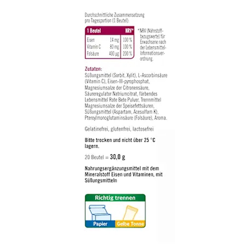 لا يجب تجاوز الجرعة اليومية الموصى بها. يُنصح باستشارة الطبيب في حالة الحمل، الرضاعة، أو في حال وجود نقص حاد في الحديد.