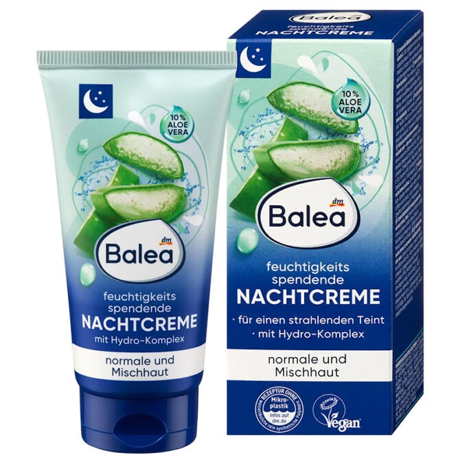 🧴 كريم الليل المرطب Balea مع الألوفيرا 10% – للبشرة العادية والمختلطة